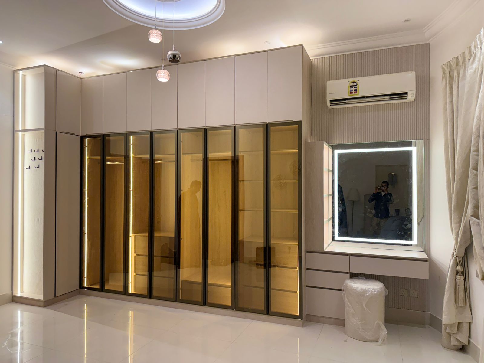 سواء كنت تبحث عن خزانة ملابس لغرفة النوم أو غرفة ملابس متكاملة، يضمن فريقنا تنفيذ تصميم يلبي احتياجاتك ويستفيد من كل زاوية متاحة، مع الحفاظ على جودة وأناقة الخزائن لسنوات طويلة.