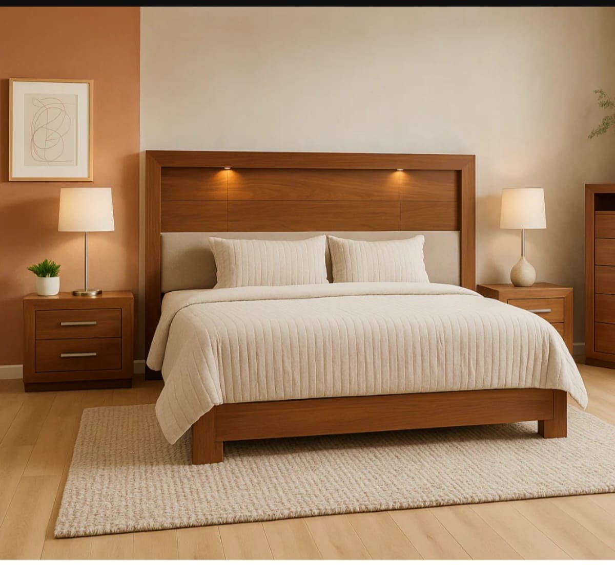 تفصيل غرف نوم كاملة: تشمل الأسرة، التسريحات، وحدات التخزين، متناسقة مع ديكور الغرفة